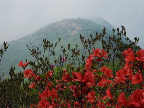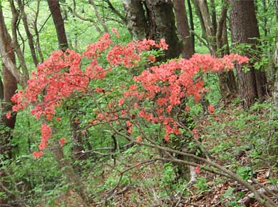 下の道ではミツバツツジは花が終って、ヤマツツジを多く見かけました↓。