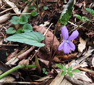 ↑木の花にくらべると地味ですが、道には時々スミレを見かけます。