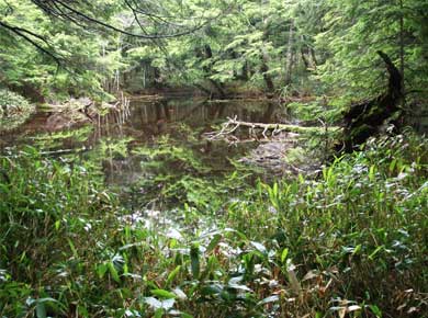 ↑林内の小さな池。以前立ち寄った時の写真で、この時は池に水鳥が泳いでいましたが、↑こちらも干上がっていました。名前は表示されていませんが、案内書に依ると「神の池」のようです。