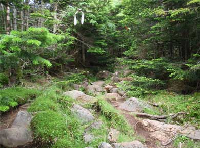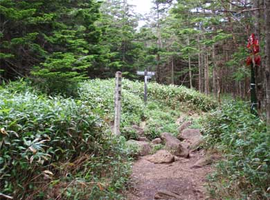 ロープウェイ駅前で左に別れ、縞枯山、茶臼山の中腹を巻く道にはいります。