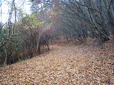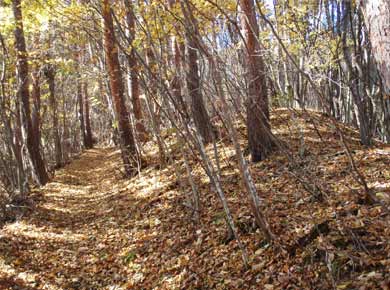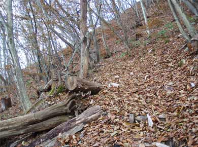 村の道は駐車場→から先が森林作業用の林道になり、入口はこのごろ山地でよく見かける獣よけのフェンスと扉でふさがれていて、あちこち留め金をはずして掛け直すので面倒です。