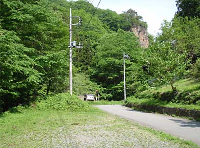 地図に「この辺の峠越えで一番マトモな道」とあったので、長野県側から、ぶどう峠を越えてはいったのですが、舗装はしてあるものの、岩峰を縫って曲がりくねった細い林道のようで、平日の早朝で対向車に出会わなかったのが幸いでした。