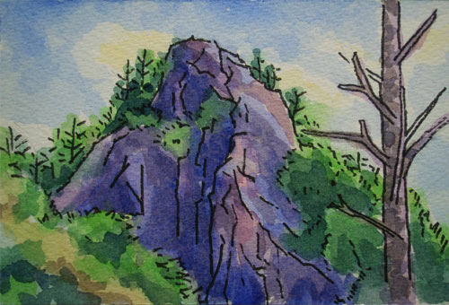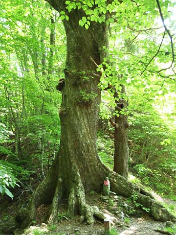 峠には大木があり↑、根元にお地蔵様が立っています。