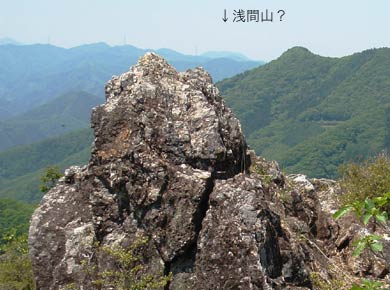 尾根上に出ると目の前に巨岩がそびえていました↓。 これが山頂だと大変な岩登りになりそうですが、道はこの岩の左を巻いて行ったようです。 ![]()