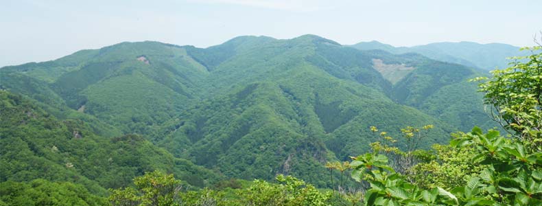 ![]() 峠から山頂への道には↑ヤマツツジがまだ咲き残っていました。このあたりはアカヤシオというツツジが多いそうですが、4月下旬が花期で、花はすでに終わっています。峠からは急な登り道が続きます↑。 |