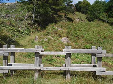 ハンゼの頭を下りた園地↓。ツツジ祭りの中心部のようですが、今は誰もいません。↑鹿よけのフェンスの内側は秋の花がいっぱいです↑。甲府盆地への電波を中継するアンテナ↓。
