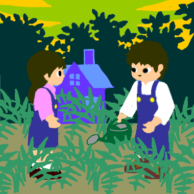 「だからね、二人はほんたうにおもしろくくらしてゐたのだから、それだけならばよかったんだ。ところが二人は、はたけにトマトを十本植ゑてゐた。そのうち五本がポンデローザでね、五本がレッドチェリイだよ。