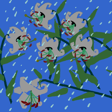 暗(やみ)が来たと思ふ間もなく、又稲妻が向ふのぎざぎざの雲から、北斎の山下白雨のやうに赤く這(は)って来て、触れない光の手をもって、百合を擦(かす)めて過ぎました。