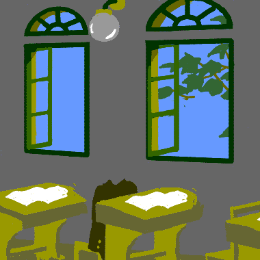 ジョバンニは勢よく立ちあがりましたが、立って見るともうはっきりとそれを答へることができないのでした。ザネリが前の席からふりかへって、ジョバンニを見てくすっとわらひました。