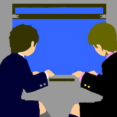 それもほんのちょっとの間、河と汽車との間は、すすきの列でさへぎられ、白鳥の島は、二度ばかり、うしろの方に見えましたが、ぢきもうずうっと遠く小さく、絵のやうになってしまひ、またすゝきがざわざわ鳴って、たうとうすっかり見えなくなってしまひました。ジョバンニのうしろには、いつから乗ってゐたのか、せいの高い、黒いかつぎをしたカトリック風の尼さんが、まん円な緑の瞳を、じっとまっすぐに落して、まだ何かことばか声かが、そっちから伝はって来るのを、虔(つつし)んで聞いてゐるといふやうに見えました。旅人たちはしづかに席に戻り、二人も胸いっぱいのかなしみに似た新らしい気持ちを、何気なくちがった語(ことば)で、そっと談(はな)し合ったのです。