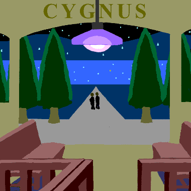 早くも、シグナルの緑の燈と、ぼんやり白い柱とが、ちらっと窓のそとを過ぎ、それから硫黄のほのほのやうなくらいぼんやりした転てつ機の前のあかりが窓の下を通り、汽車はだんだんゆるやかになって、間もなくプラットホームの一列の電燈が、うつくしく規則正しくあらはれ、それがだんだん大きくなってひろがって、二人は丁度白鳥停車場の、大きな時計の前に来てとまりました。 さはやかな秋の時計の盤面(ダイアル)には、青く灼(や)かれたはがねの二本の針が、くっきり十一時を指しました。みんなは、一ぺんに下りて、車室の中はがらんとなってしまひました。 〔二十分停車〕と時計の下に書いてありました。 「ぼくたちも降りて見ようか。」ジョバンニが云ひました。 「降りよう。」 二人は一度にはねあがってドアを飛び出して改札口へかけて行きました。ところが改札口には、明るい紫がかった電燈が、一つ点(つ)いてゐるばかり、誰も居ませんでした。そこら中を見ても、駅長や赤帽らしい人の、影もなかったのです。