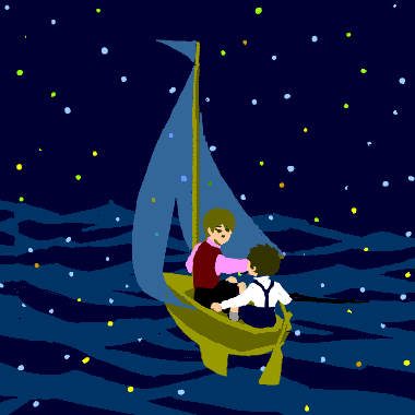 それどこでなくカムパネルラは、その雑誌を読むと、すぐお父さんの書斎から巨(おほ)きな本をもってきて、ぎんがといふところをひろげ、まっ黒な頁いっぱいに白い点々のある美しい写真を二人でいつまでも見たのでした。それをカムパネルラが忘れる筈もなかったのに、すぐに返事をしなかったのは、このごろぼくが、朝にも午后にも仕事がつらく、学校に出てももうみんなともはきはき遊ばず、カムパネルラともあんまり物を云はないやうになったので、カムパネルラがそれを知って気の毒がってわざと返事をしなかったのだ、さう考へるとたまらないほど、じぶんもカムパネルラもあはれなやうな気がするのでした。 |