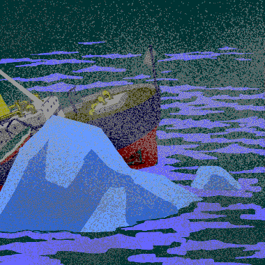 「わたしたちはもうなんにもかなしいことないのです。わたしたちはこんないゝとこを旅して、ぢき神さまのとこへ行きます。そこならもうほんたうに明るくて匂(にほひ)がよくて立派な人たちでいっぱいです。そしてわたしたちの代りにボートへ乗れた人たちは、きっとみんな助けられて、心配して待ってゐるめいめいのお父さんやお母さんや自分のお家へやら行くのです。さあ、もうぢきですから元気を出しておもしろくうたって行きませう。」青年は男の子のぬれたやうな黒い髪をなで、みんなを慰めながら、自分もだんだん顔いろがかゞやいて来ました。 |