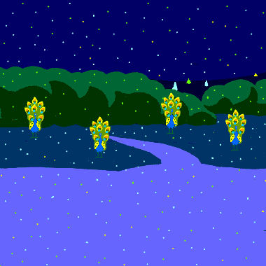 「からすでない。みんなかささぎだ。」カムパネルラがまた何気なく叱るやうに叫びましたので、ジョバンニは思はず笑ひ、女の子はきまり悪さうにしました。まったく河原の青じろいあかりの上に、黒い鳥がたくさんたくさんいっぱいに列になってとまってじっと川の微光を受けてゐるのでした。
