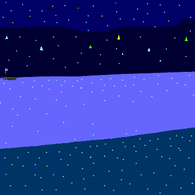 向ふとこっちの岸に星のかたちとつるはしを書いた旗がたってゐました。