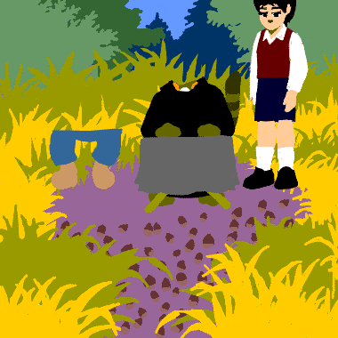 別当が、むちをひゆうぱちつと鳴らし、どんぐりどもはみんなしづまりました。山猫が一郎にそつと申しました。