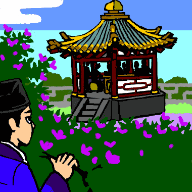 塀ぎわを谷川が流れ、半分開いた朱塗りの門が見えますから、橋を渡って覗いてみると高楼に雲が掛かって、その広大なことは皇帝の庭園か貴族の別荘かと思われるくらいです。