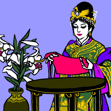 陳が詩を書いたハンカチを渡すと、侍女は眼をむいて驚きました。