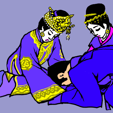 陳は震えおののきながら、侍女のあとについて何十もの門を抜け、宮殿のひとつにはいったのでした。