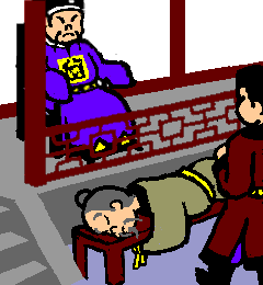 ところが、回廊の下で道人が打たれるたびに、上で見ているこの役人に、骨が砕けるような痛みが走るのです。