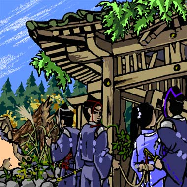 ところがそれが宝物殿の中から急に無くなり、大宮司が国の守に訴え出たところ、次官の文室の広之(ふみやのひろゆき)という方が探索のために大宮に来られているということだ。この太刀はどう見ても下役人の持つ物ではなさそうだ。やはり父にも見てもらった方がいい」