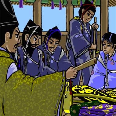 客殿の格子戸を開けると、生臭い風が吹き出してきましたから、皆あとずさりして顔を見合わせる中、巨勢の熊樫(こせのくまがし)という豪傑が
