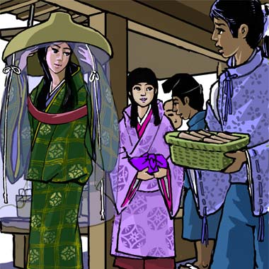 石榴市(つばいち)は長谷(はせ)寺の近くなのですが、この観世音の霊験あらたかなことは外国にまで知られたほどで、遠近からの参詣人で春はことににぎわっておりました。