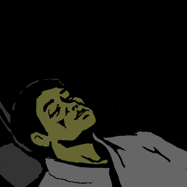 今は昔、陽成院は冷泉小路を挟む南北二町にまたがる屋敷に住まわれました。 上皇が亡くなられてからは小路は開放され、北の町は人家となり、南には池などが残っていましたが、後にはそこにも人が住むようになりました。 その南の町の屋敷で、夏の夜、暑いので縁側で寝ていた人がありましたが、背丈三尺ばかりの翁(おきな)が現れ、寝ている人の顔をなでまわすのでした。 恐ろしいのでどうすることも出来ず、そのまま寝たふりをしていると、老人はそっと離れて行きました。