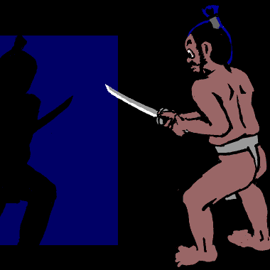 「そやつの素っ首、打ち落としてやる!」と、出て見ますと、刀を持った男の影が見えますから、