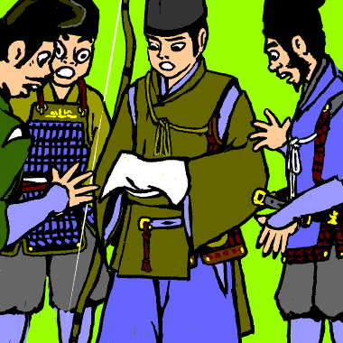 陸奥(みちのく)からの帰り道、またこの郡司の家に立ち寄り、馬や絹などたくさんの物を与えましたから郡司は大喜びで、