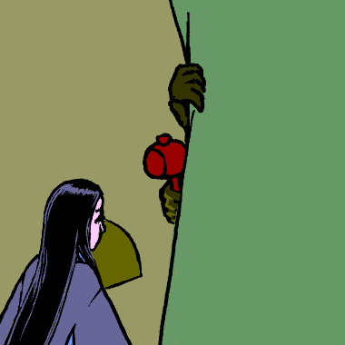 こんなのが突然后の御殿に現れたのですから、仰天した侍女たちは気絶する者、逃げ出す者、着物をかぶって震えている者など、大変な騒動です。