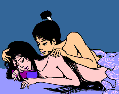 そんなわけで、中将は日頃の思いや、後々までの約束などを語るうちに、女は物思いにしずんで忍び泣きをしている様子です。