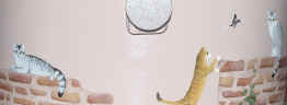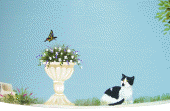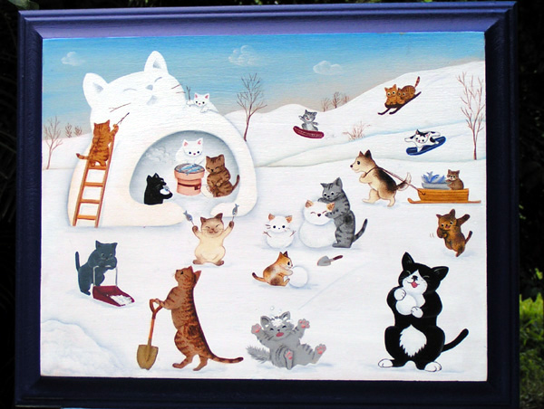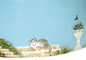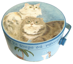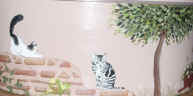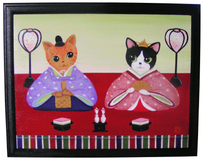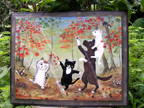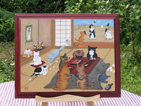 | もも さくら うし (バスケット側面に今まで飼っていた猫が遊んでいるように製作) |