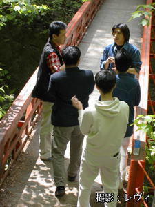さらに渓谷にかかる赤い橋の上で記念写真…のはずが