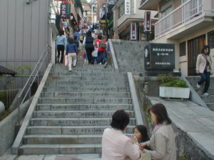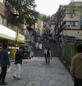 来たかった石段です。いかにも温泉街といった雰囲気です。