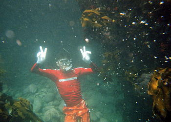 冬弥はそのまま岸に上がって今年のダイビングを終了する。
