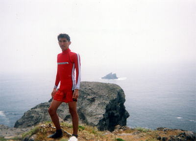 さて、島に上陸。てっちゃんと階段を上って島上まであがって記念撮影。