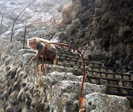 遊覧船が過ぎ去り、ふと横をみれば1匹の猿が