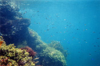 やはり浜から近いところでは海中の透明度は今ひとつなので