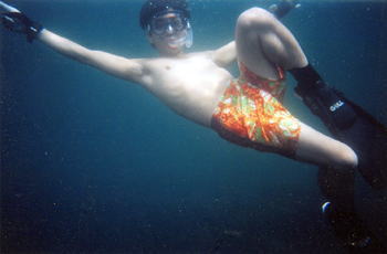 去年見つけた綺麗なところ、なるべく沖のほうへ出て行きます。