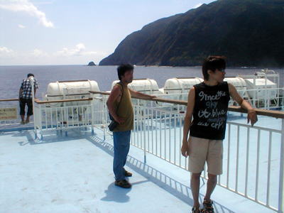 しばらく甲板で風に吹かれ、離れていく島を見ていました。