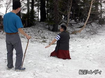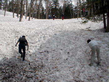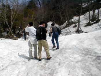 なんとか全員無事に雪のない所まで下ってこれて一安心。