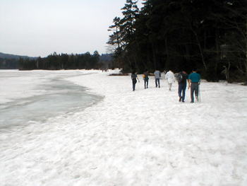 すぐにピンときました。あれが尾瀬沼で沼の表面が凍っているのだと。