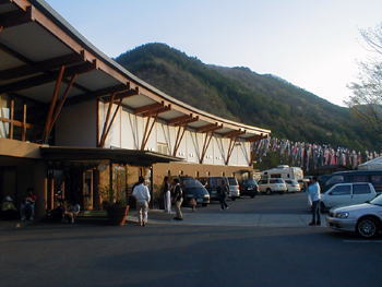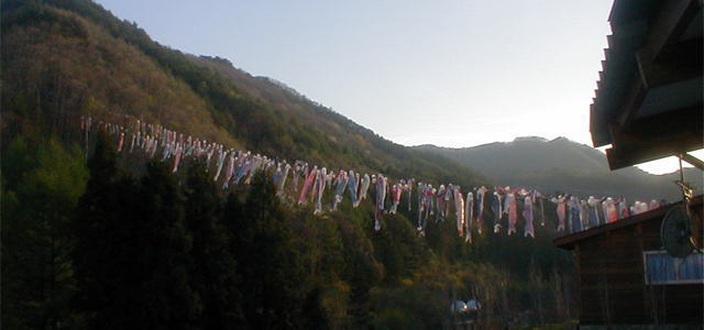 花咲の湯につくと前にたくさんのこいのぼりが見えました。