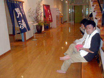 湯上り、体脂肪を計る機械があったのでみんなしてやってみます。