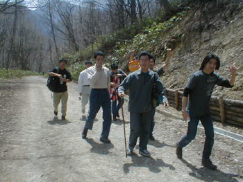 とりあえず橋でみんなで記念撮影の後、山道に突入です。