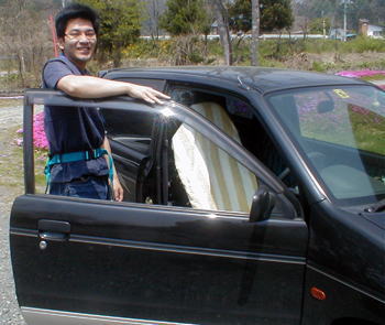 その時、ナビシート後ろのピラーにコーチが手をかけていたのを知らずに