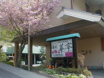 案内所で『湯元華亭』というところを聞き、細い道を通り抜けその『湯元華亭』へ到着します。