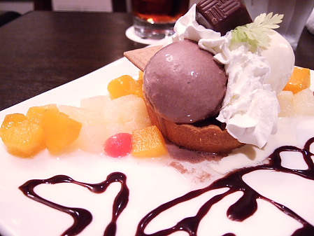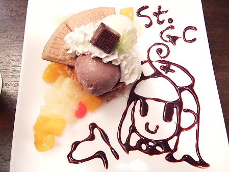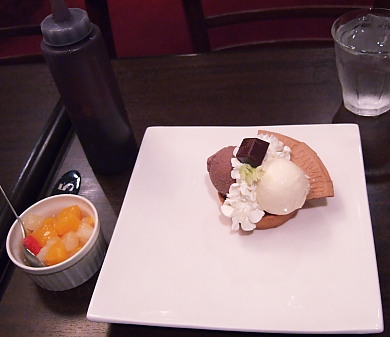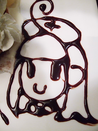 ここからシスターがチョコレートソースとフルーツでトッピングしてくれます。