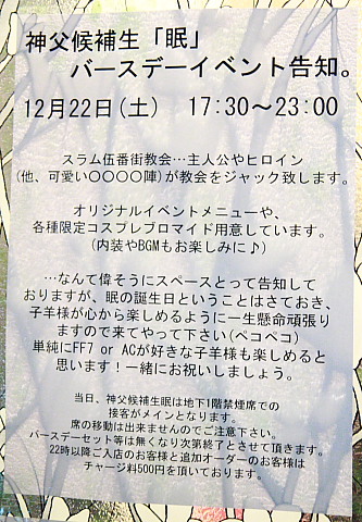 St.GraceCourt「神父候補生眠バースデーイベント」